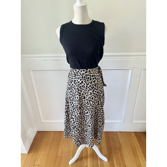 Tori Praver Leopard Print Tie Wrap Midi Skirt S