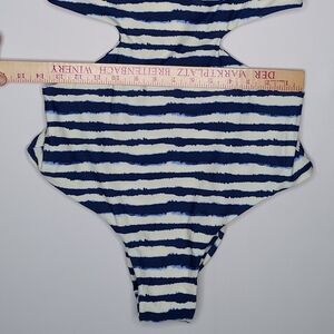 Tori Praver Swimwear Swimsuit One Piece Large Cutout Cheeky Blue Stripe Stretch