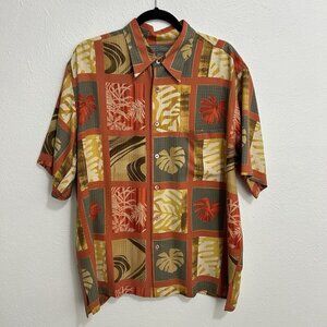 Tori Richard 100% Silk Hawaiian Short Orange Colorful Color Block Patchwork Sz L