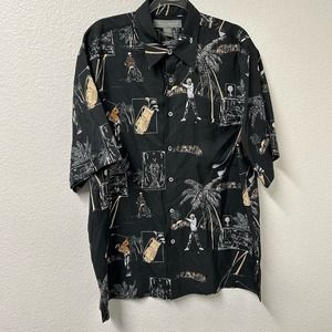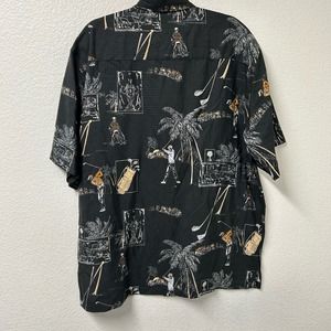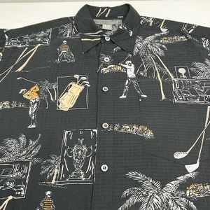 Tori Richard 100% Silk Hawaiian Textured Shirt Golfer Palm Trees Size Large
