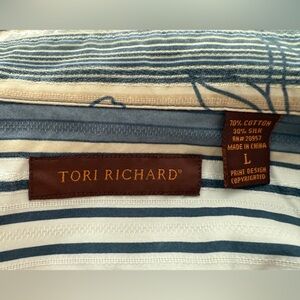 Tori Richard Aloha Hawaiian Blue & Tan Striped Floral Shirt Men L Large