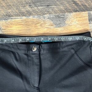 This pair of Tori Richard pants feature 2 front angled pockets, 72% Viscose 26% Polyamide and 2% Spandex - Silver button and zip waist - the button shows wear and it noted in the photos - Measurements in photos