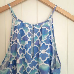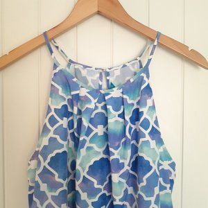 Tori Richard Blue Print Trapeze Sleeveless Spaghetti Strap Top Size 10
