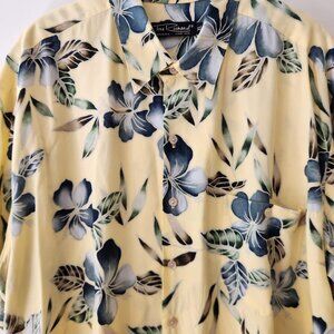 Tori Richard Hawaian Shirt Yellow and Blue Floral Aloha Viscose Mens Size XL