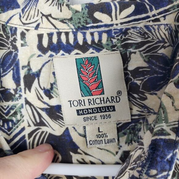 Tori Richard Hawaiian Button-Down Shirt Blue Floral Size Large