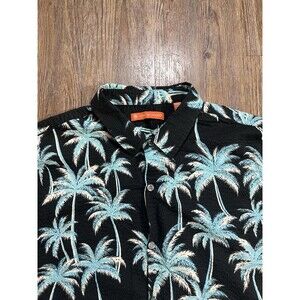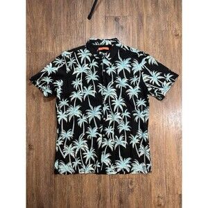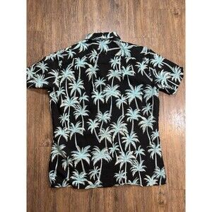 Tori Richard Hawaiian Seersucker SS Shirt Men's L Blue Palm Tree Print Pucker