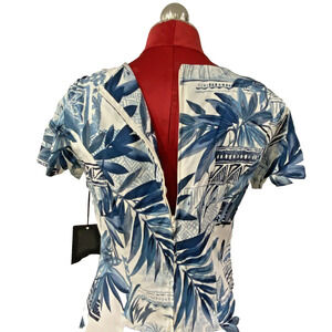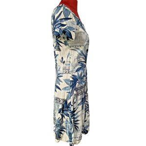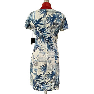 Tori Richard Honolulu Dress Made in Hawaii Short Sleeve Blue & White XS Vintage