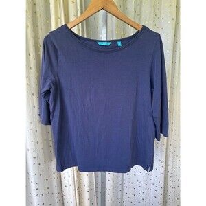 Tori Richard Honolulu Hawaii Women's Classic Solid Navy Quarter Sleeve Top M