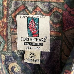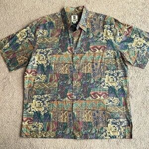 Tori Richard Honolulu Hawaiian Printed Short Sleeve Button Down Pint Brown Green
