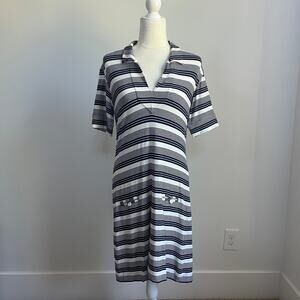 Tori Richard Honolulu Jaxon Navy White Striped Short Sleeve Knit Dress Medium