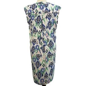 Tori Richard Honolulu Shift Dress Women's Blue Multicolor Print V Neck Size L