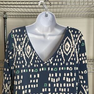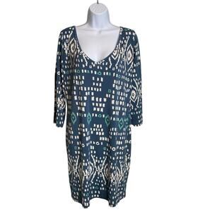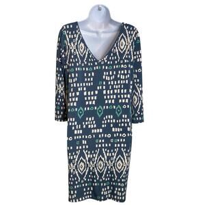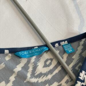 Tori Richard Honolulu Women's Blue Modern Print Dress Size M Artsy Stretchy