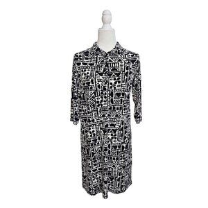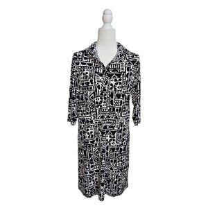 Tori Richard Honolulu black and white 3/4 sleeve midi dress size XS