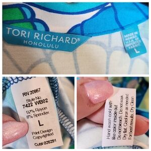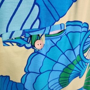 Tori Richard Jersey Knit Short Sleeve Knee Length Dress Blue Green Shells Large