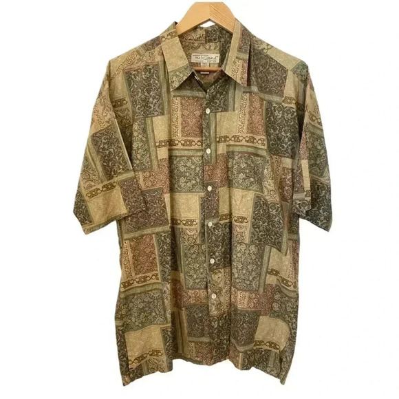 Tori Richard Medallion Print Cotton Lawn Aloha Hawaiian Shirt Size XL Button. This shirt is pre-owned. Excellent condition no flaws. Measurements: 23 inch chest 22 inch waist 31 inch length