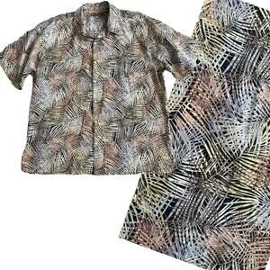 Tori Richard Men XL Cotton Lawn Aloha Hawaiian Palm Leaves Tropical Button Shirt