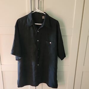 Tori Richard Men's Black Short Sleeve Silk Palm Tree Shirt Size XL