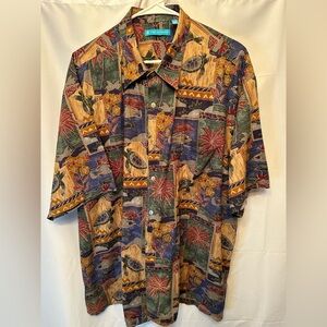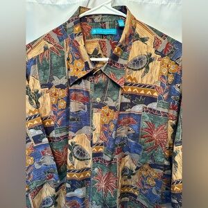 Mint condition TORI RICHARD Floral Sea Turtle Fish Palm Trees Hawaiian Shirt