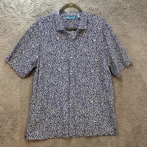Tori Richard Men's XL Short Sleeve Button Up Shark Design Blue White Beach