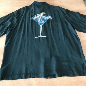 Tori Richard Shirt Men 2XL Black Blue Koi Fish Martini Button Up Button Up Silk 17327