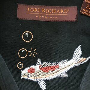 Tori Richard Shirt Men 2XL Black Blue Koi Fish Martini Button Up Button Up Silk