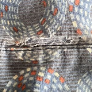 Condition: Fair used condition with two notable flaws. There is a hole along the hem at the side seam and another area of fraying/wear at the back yoke seam (see detailed photos). Signs of general wear throughout. Sold as is for repair or casual wear.