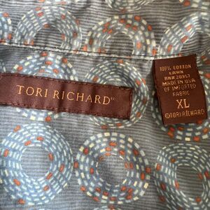 Tori Richard Shirt Mens XL Blue Red Cotton Lawn Button Up Short Sleeve USA Made