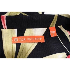 Tori Richard - Silk Blend Hawaiian Shirt with Bird of Paradise Pattern, Black Background, size Large.
