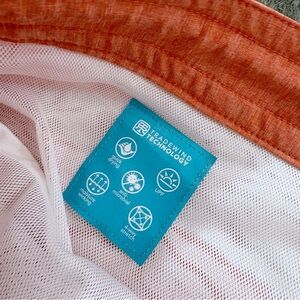 Here’s a super nice pair of swim trunks or board shorts by Tori Richard. Size 40. Great condition and nice quality. Love the shade of orange with the pop of turquoise on the drawstrings. Perfect to go swimming in or for casual wear too. :)