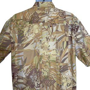 Tori Richard Tan Floral Hawaiian Button Front Made in the USA Shirt Men's L