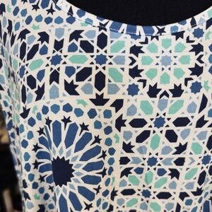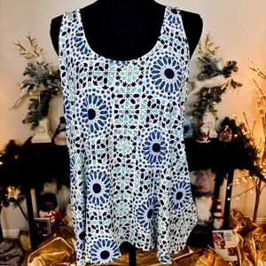 Tori Richard - island wear at its best. Fun design and colors on this tank top, with a round neck and razor back. Extremely soft material and it is easy to wear. LIKE NEW