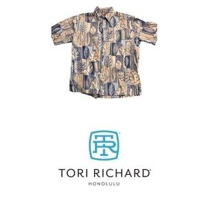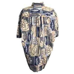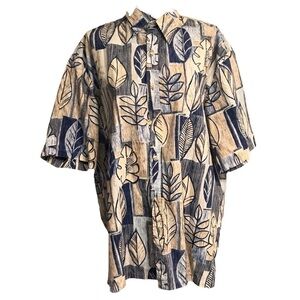 Tori Richard Tan Blue Leaf Print Button Up Shirt