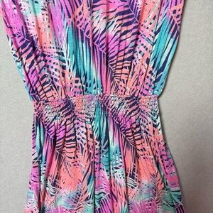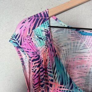 Tori Richard women’s tropical palm leaf print coverup dress in vibrant multicolor. Lightweight and flowy with mini length, perfect for beach days or poolside lounging. Size M. Easy, breezy resort vibe.