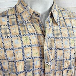 Tori Richard Tropical Golf Print Button Up Camp Hawaiian Shirt Tan Medium