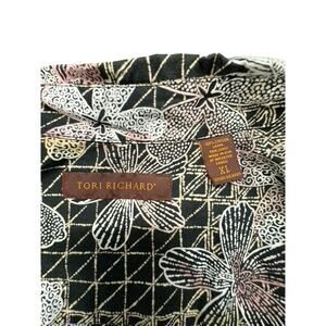 This Tori Richard Hawaiian shirt, titled "LAWN", is a must-have for any fashion-forward man. The shirt is made in the USA and features beautiful white and pink flowers, perfect for any casual occasion. The shirt is a size XL and has short sleeves, making it comfortable and easy to wear. The button-up design adds a touch of sophistication to the shirt, making it perfect for both work and play. The shirt is black in color and is a regular size type. This shirt is a great addition to any wardrobe and is sure to make a statement.