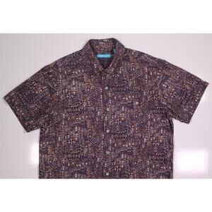 Tori Richards Purple Geometric Print Tencel Modal Button-Up Hawaiian Shirt~ M