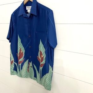 Tori Richards Vintage Tropical Hawaiian Floral Casual Button Down Shirt, Medium
