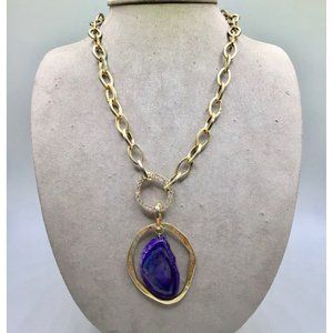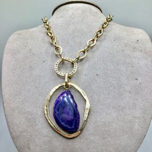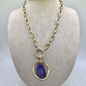 Tori Spelling 80s Necklace Gold Tone Chain Purple Stone Slab Removable Pendant