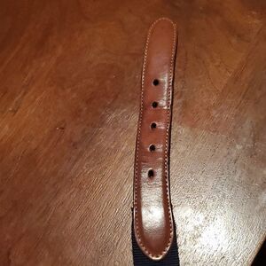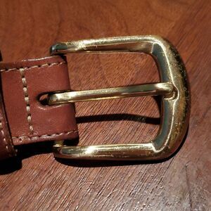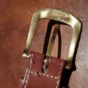 This is a Torino Leather Co. European ribbed surcingle belt. It has Italian calfskin tabs and loop and a polished brass-finished buckle.