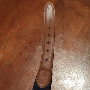 Belt (without buckle) measures about 48.5" in length, 42.25" to first hole, 46.5" to last hole.