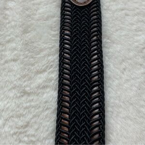 Torino Made In USA Brown Leather Black Braiding Belt Size 44. Excellent used condition. Silver tone brass buckle. Measures approximately 51"x 1.25".