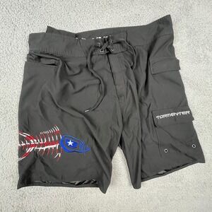 Tormenter Board Shorts Mens 38 Black Fishing Swim Trunks Fish Skeleton Logo Polyester