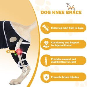 Provide comfort and support for dogs with torn ACLs. This adjustable knee brace is suitable for rear or front legs and helps relieve joint pain while aiding in recovery from cruciate ligament injuries.