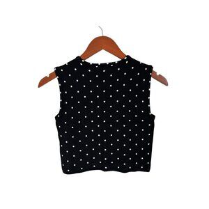 Torn By Ronny Kobo Black & White Polka Dot Sleeveless Cropped Tank Top S