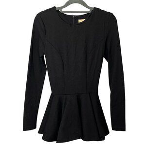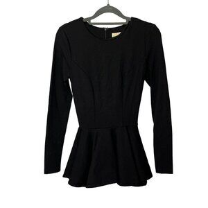 Torn By Ronny Kobo Judy Peplum Long Sleeve Blouse Black Size Small