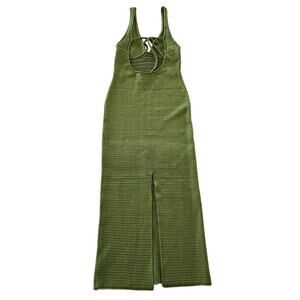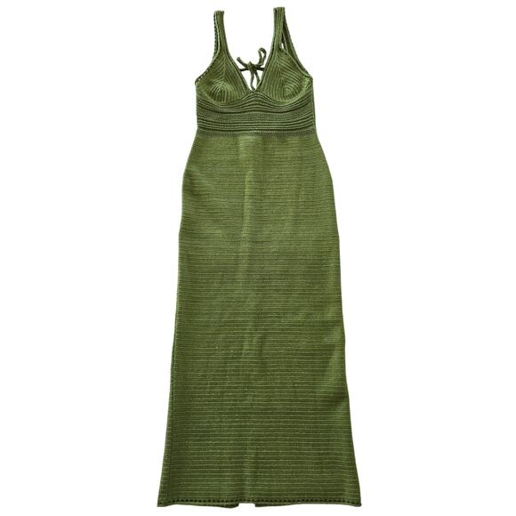 Torn by Ronny Kobo Green Crochet Knit Maxi Dress Size L Sleeveless Bodycon