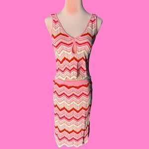 Torn by Ronny Kobo Pink Red Chevron Crochet 2-Piece Set Skirt Set. Medium. NWT!