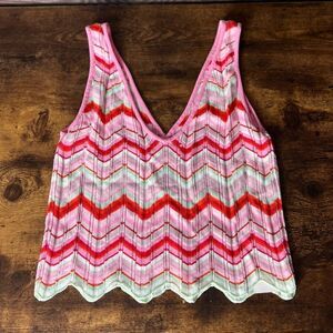 Torn by Ronny Kobo Pink/Red/Green Chevron Crochet 2-Piece Set Skirt Set. Size Medium. Super cute, lightweight and lots of stretch. Luxury Designer! Brand new and never worn. New with tag.