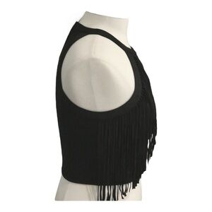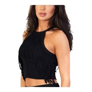 Torn by Ronny Kobo Reba Fringe Crop Top in Black NWT