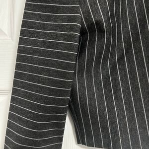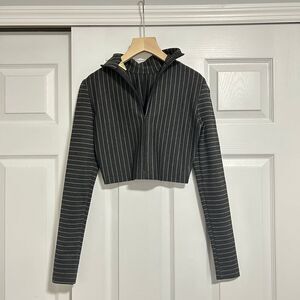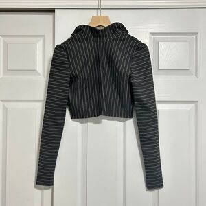 Torn by Ronny Kobo Sulan Mock Neck Crop Zipper Top Gray Pinstripe Long Sleeve